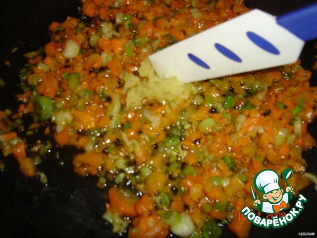 В зажарку добавить натёртый на мелкой тёрке корень имбиря