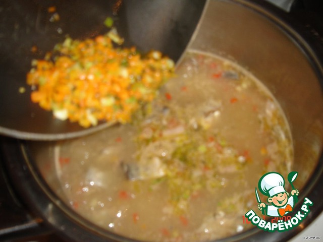 Через 5 минут добавить в суп зажарку