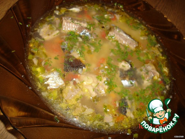 Добавить сайру в суп.