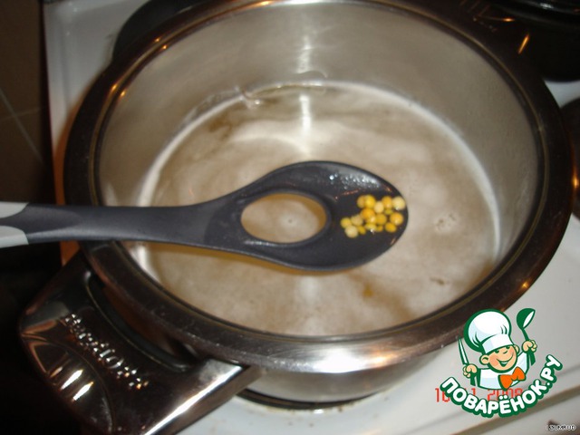 Как вода закипит, бросить горох и лавровый листик.