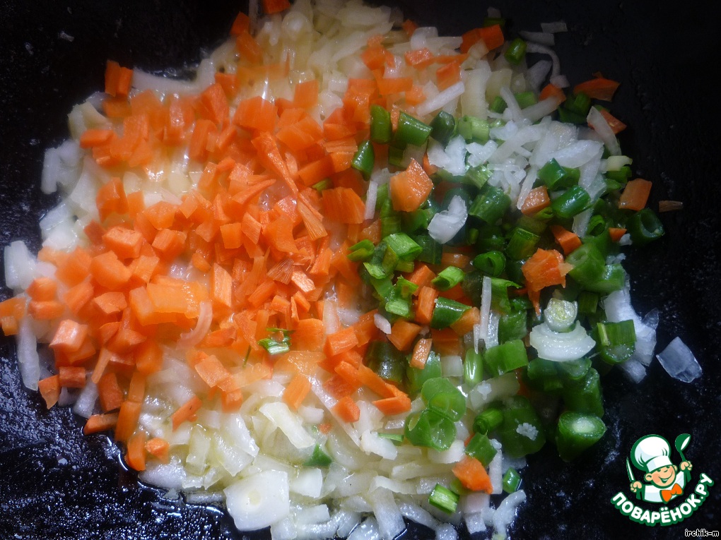Нарезать лук, морковь, сельдерей, чеснок, цветную капусту.