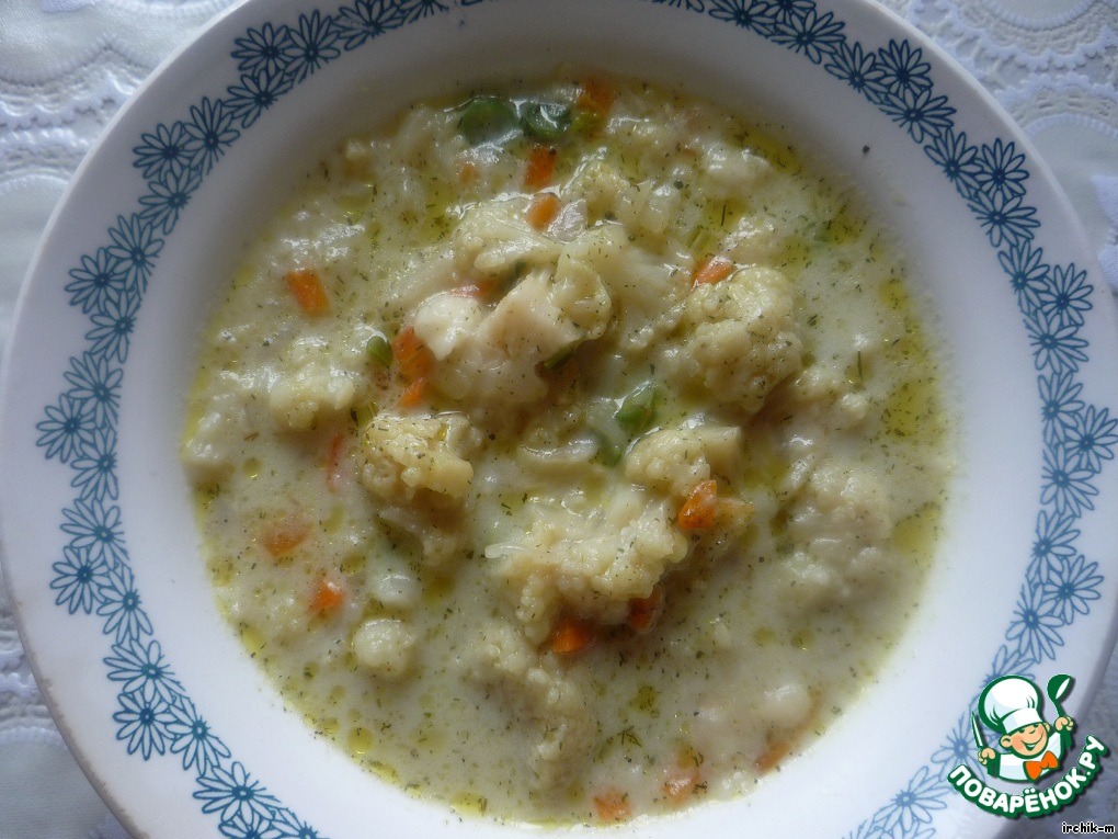 | Цветная капуста считается настоящей королевой среди овощей, поскольку в ней содержится множество питательных веществ. Цветная капуста полезна и взрослым и детям независимо от состояния здоровья. Нежная мякоть овоща, содержащая легкоусваемую клетчатку, идеально подходит для людей, которым из-за проблем с желудочно-кишечным трактом противопоказано употребление обычной белокочанной капусты. Польза цветной капусты объясняется содержанием в ней практически всех необходимых человеку витаминов. Витамина С в ней в два раза больше, чем в цитрусовых. Всего пятьдесят грамм данного овоща в сутки содержат суточную дозу витамина С для человека. Витамины С и А обладают мощными антиоксидантными свойствами, а витамины группы В, также содержащиеся в капусте, оказывают благоприятное воздействие на нервную систему. Богата также цветная капуста такими микроэлементами как калий, кальций, фосфор, магний и железо. В ней содержится много пектина, лимонной и яблочной кислот. Хочу предложить вам рецепт необычайно вкусного, легкого и ароматного супа из цветной капусты. |