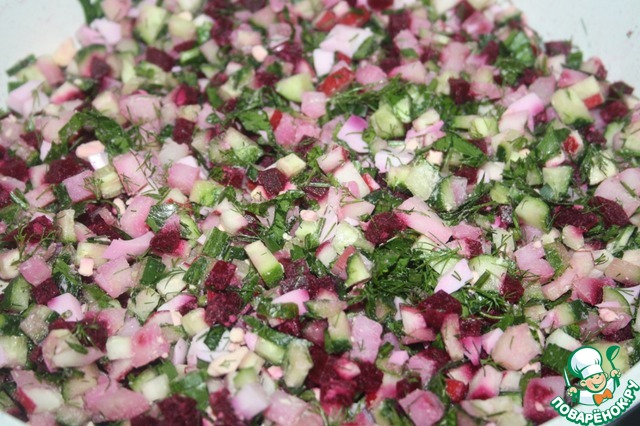 Холодник с куриной грудкой, свеклой и летними овощами
