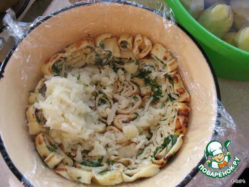 Глубокую салатницу выложить пленкой (чтобы края хорошо свисали)