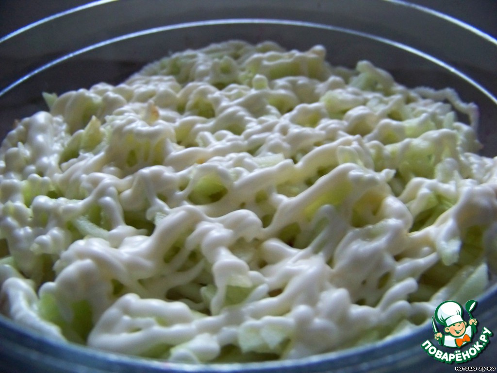 Яблоко нарезать соломкой и сверху майонез.