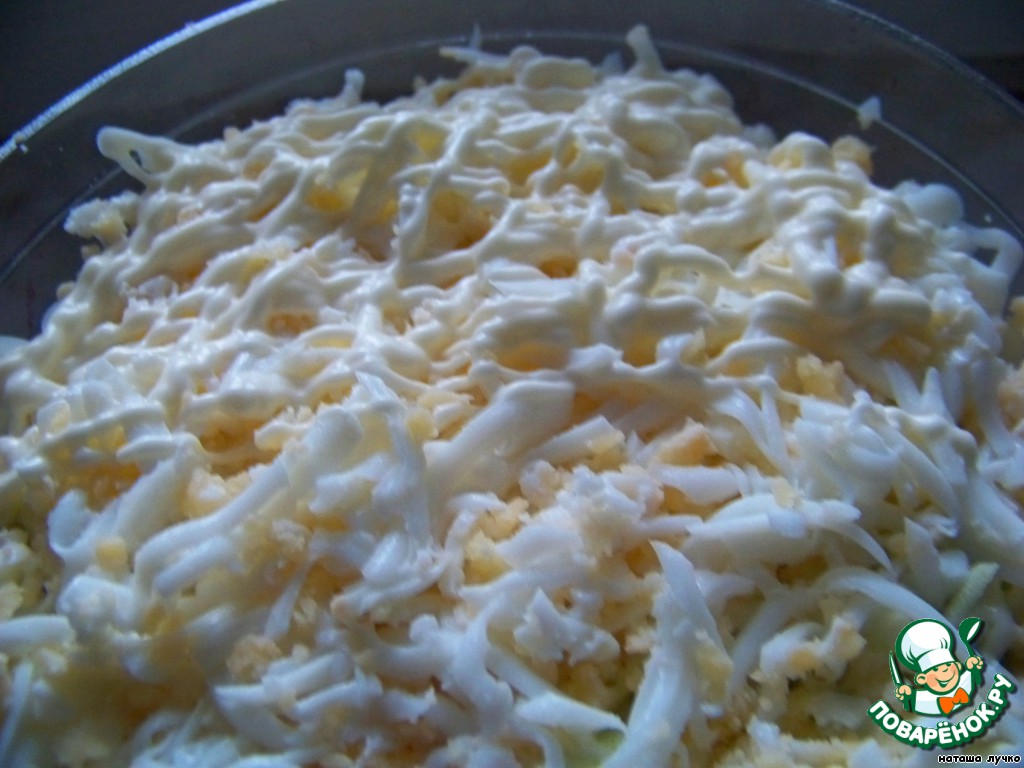 Далее натереть яйцо и "сеточка".