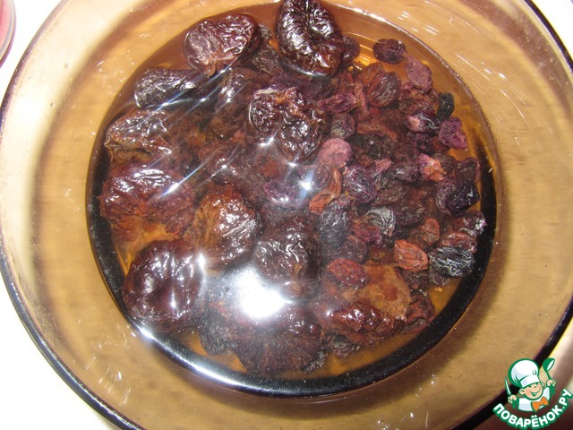Залейте изюм и чернослив горячей водой на 10-15 минут.