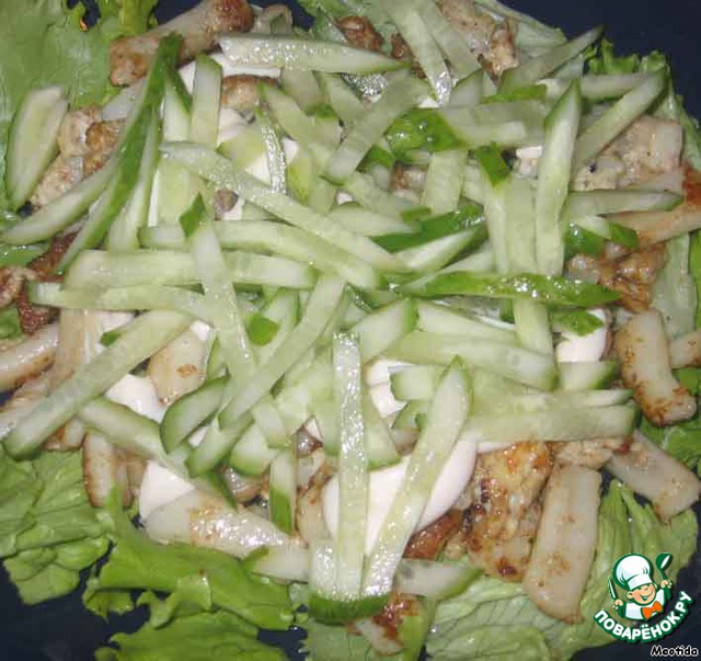 огурез нарезаем соломкой и выкладываем следующим слоем