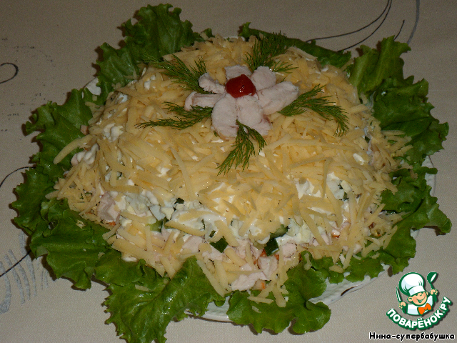 4 слой- яйца. Сверху посыпать сыром. Дать салату пропитаться.