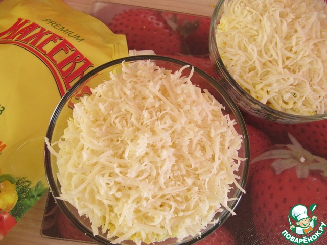 4 слой-яйцо натереть на тёрке, смазать майонезом. Слои можете повторить