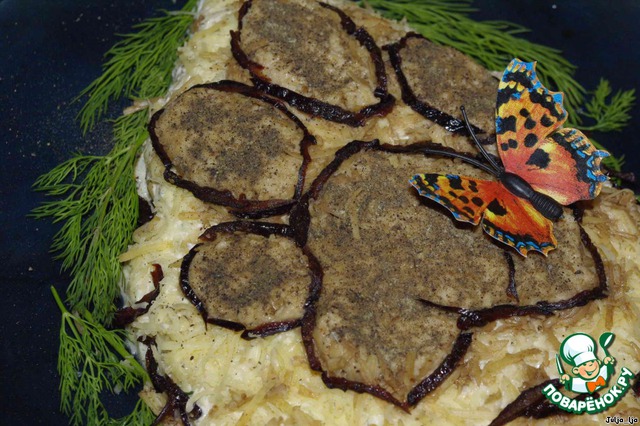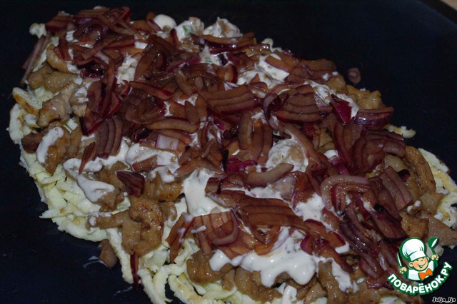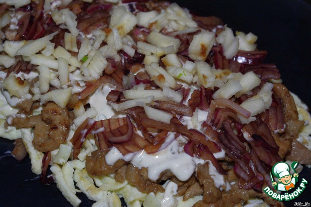 На лук - яблоко, соломкой. У меня его совсем немного.