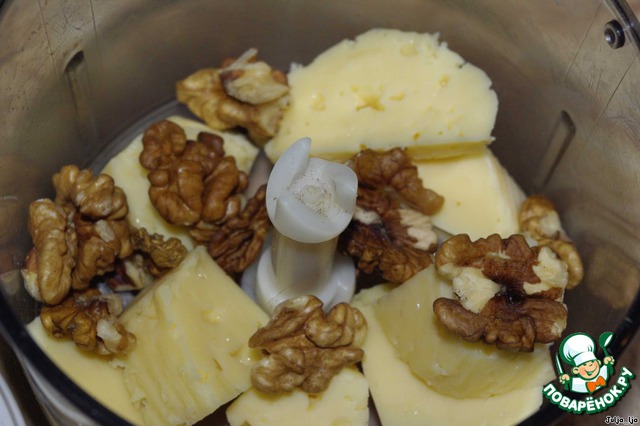 Промежутки оформляем натёртым сыром, подкрашенным бальзамическим уксусом.