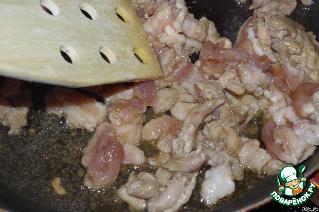 Обжариваем мясо на растительном масле до готовности, немного подрумянивая.