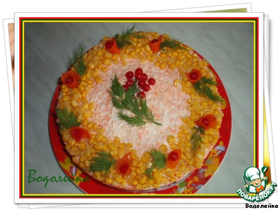 Дальше оставшуюся кукурузу выкладываем в виде кольца на слой морковки.