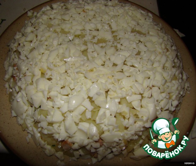 | Салат обычный...)))Я вам показываю только идею оформления...Скоро 23 февраля...Может кому- то пригодится...И вообще, может кто-то, как и я, из военных семей..порадует своих отцов..мужей..братьев на их праздники))).Идея такого оформления пришла благодаря салатику Викули nikulj " Тигрица" Рецепт здесь http://www.povarenok.ru/recipes/show/15842/ |