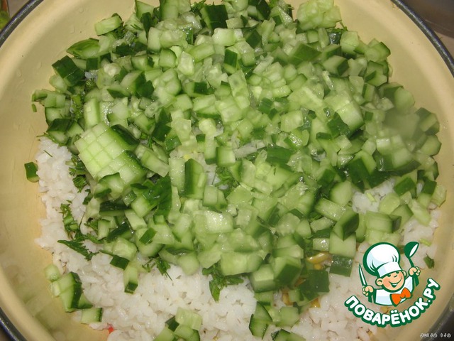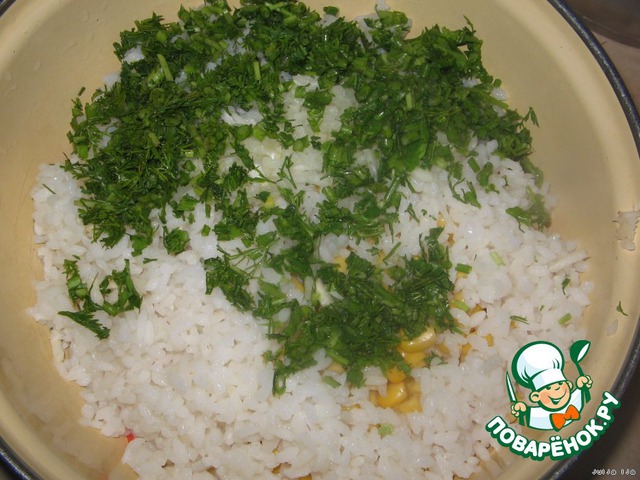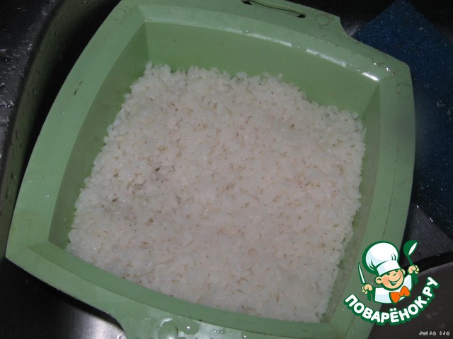 Рис отварить в большом количестве немного подсоленной воды. Я варю так, чтобы он не был сильно разваренным, а слегка даже не довариваю. Обязательно промыть холодной водой.