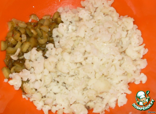 Капусту отвариваем и разбираем на маленькие цветочки.