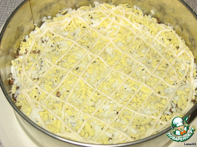 Сетку можно делать чаще, но мы не любим слишком майонезно, поэтому у меня сеточка редкая.