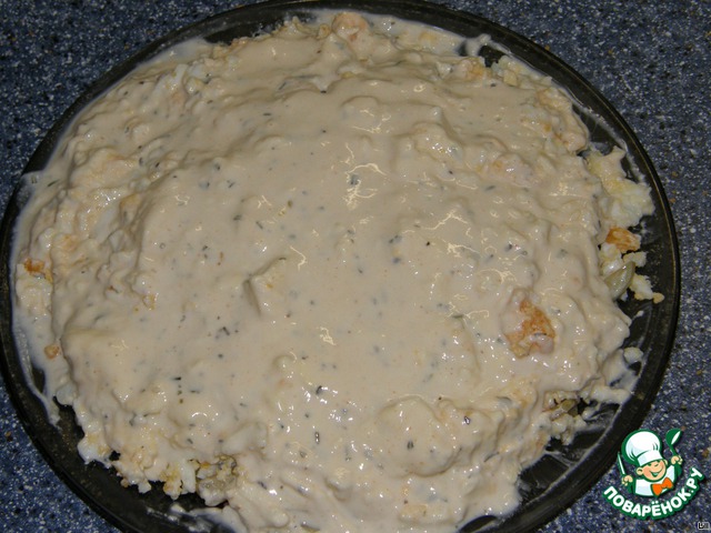 Остывшим сырным соусом поливаем наш салатик (соус достаточно густой, т.ч. "жижи" в салате не будет!)