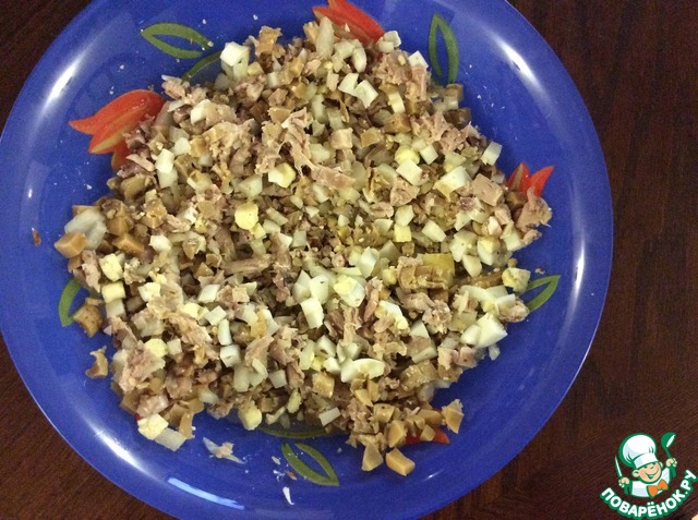 | Много лет назад, когда готовые салаты только появились в продаже, купила на пробу и разобрала по ингредиентам. С тех пор пользуется спросом на семейных праздниках, надеюсь и вам придется по вкусу. |