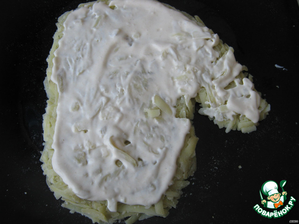 Промазываем картофель соусом.