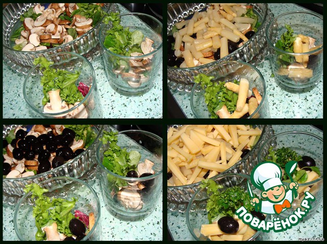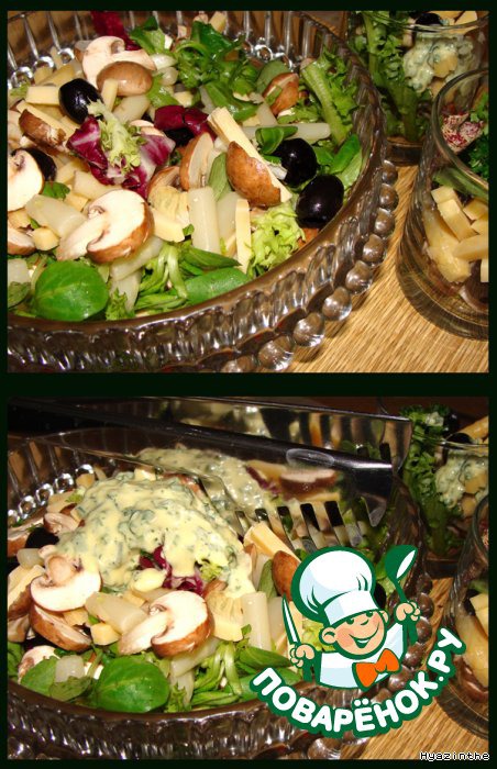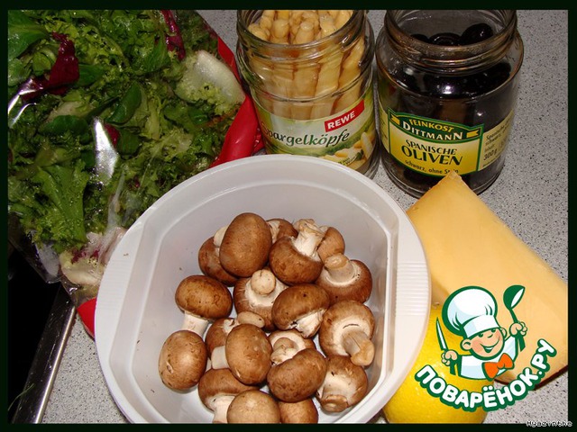 | Легкий и быстрый в исполнении, но довольно сытный салат для любителей сырых шампиньонов, оливок и спаржи. Салат из коллекции Dr. Oetker |