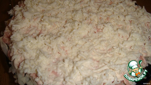 4слой,сыр натрите на тёрке и смажьте майонезом