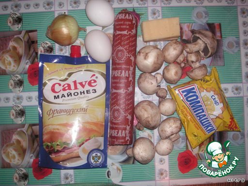 - на сервелат уложить пюре и придать форму пирамидки, главное, чтоб пюре было не слишком много, а то вкус салата потеряется,