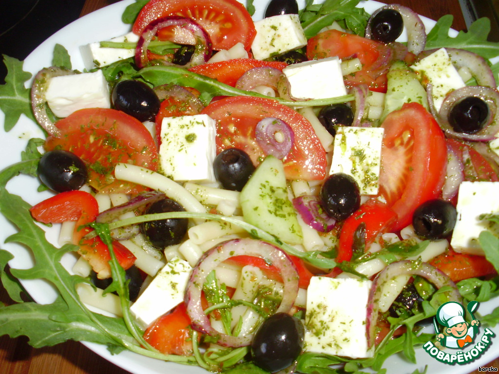 | Макаронные салаты - характерное блюдо, скорее всего, для Италии. В этом варианте - греческие мотивы. Данный салат может послужить основным блюдом или блюдом-гарниром в жаркие летние дни. Это - мой подарок поварeнку Rar_Avias (Костасу). Источник: немецкий кулинарный журнал "КУХНЯ Хорошее настроение" |