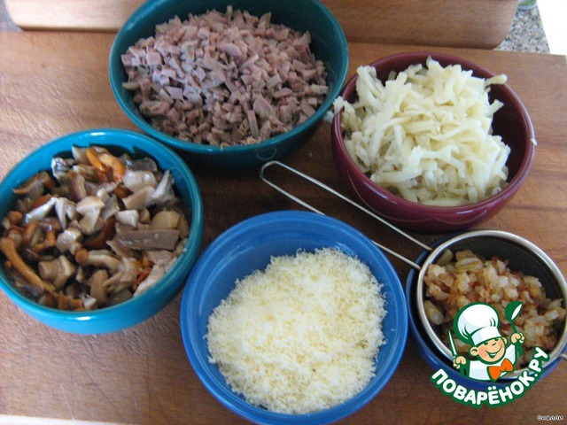 6 слой - сыр (присыпать сыром, пушистым как первый снег).