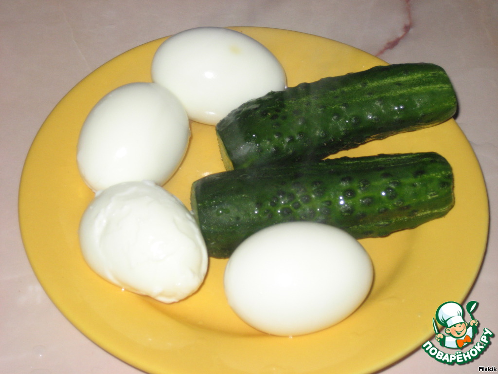 Вареные яички и огурцы тоже порезать.