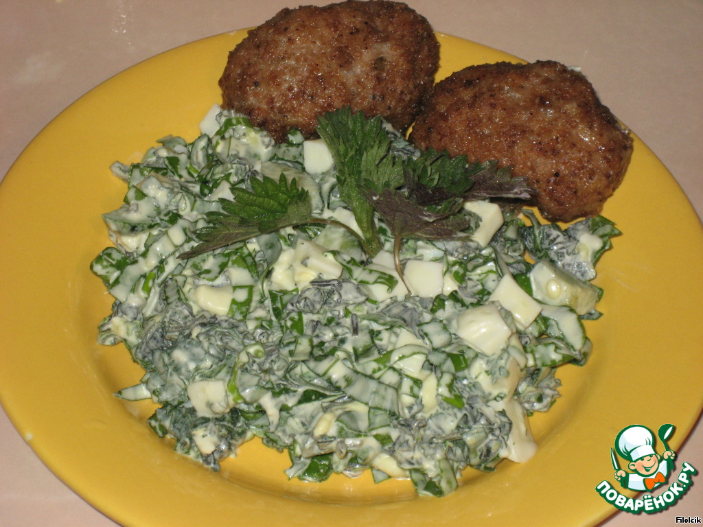 | Салатик из молодой крапивы и черемши. Я никогда раньше не пробовала крапиву, и почему то не решалась еe купить и что нибудь приготовить. Недавно были на даче у родствеников, в лесу на прогулке собрали молоденькую крапиву и мой свекр(Кулинар с большой буквы)посоветовал попробовать крапиву например в таком варианте и мне очень понравилось. Теперь буду готовить чаще... Салат в принципе простой, но на сайте салатиков из крапивы не большой выбор, может и мой рецептик кому нибудь пригодится. |