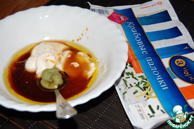 В миске соединить рисовый уксус, сахар, васаби, соевый соус, майонез и растительное масло до однородного состояния.