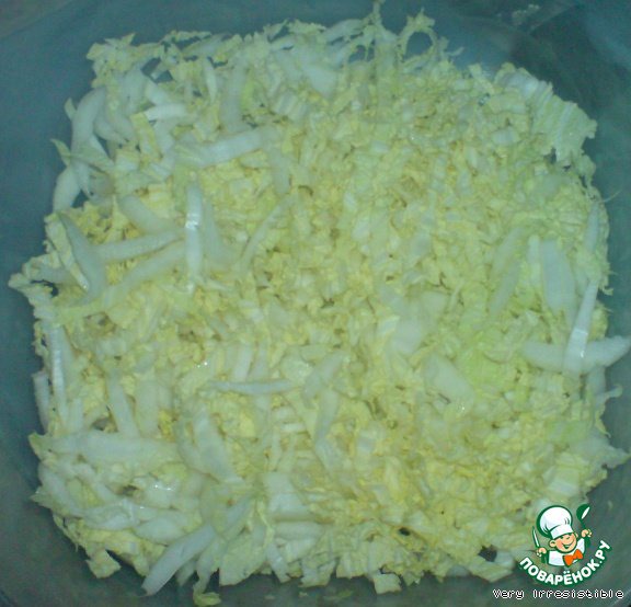 Шинкуем пекинскую капусту.