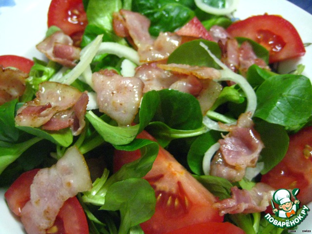| Очень вкусный салатик с помидорами и свеклой, а жареный бекон придает ему особую "изюминку" - аромат копченостей и мясной вкус. |