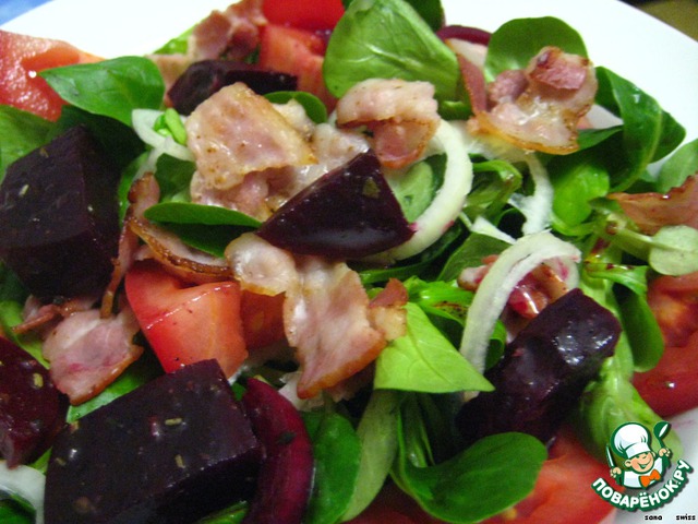 Полевой салат с беконом и свеклой