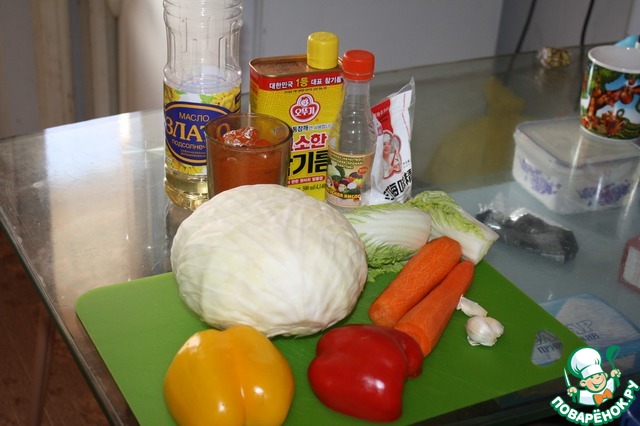 На фото необходимый нам набор продуктов. К сожалению, забыла поставить соль. Также видно, что нам потребуется глютамат натрия (аджино-мото), необходимо 1-2 щепотки. В списке ингредиентов при добавлении нет правильного названия : (