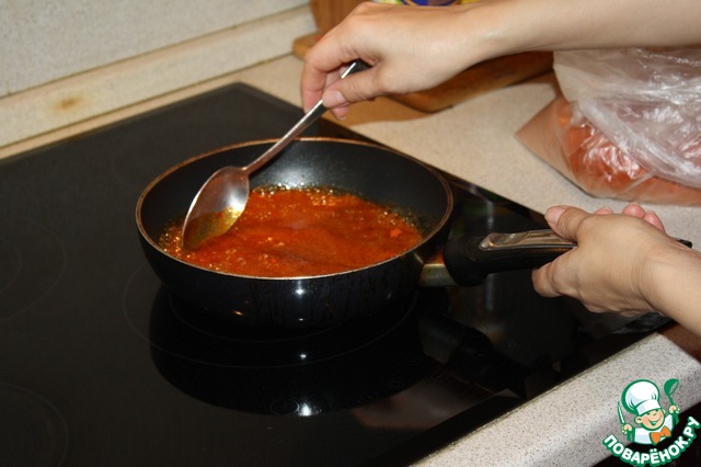 Зажариваем растительное масло с красным перцем. Я уже выкладывала видео, как правильно зажаривать масло для корейских салатов - http://www.povarenok .ru/recipes/show/841 51/.