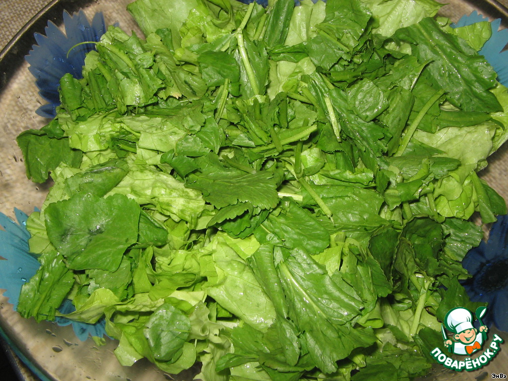 Затем так же поступим с другим салатом (я использую кресс-салат, но, как указано в ингредиентах, можно взять любой другой доступный вид салата, рукколу, например).