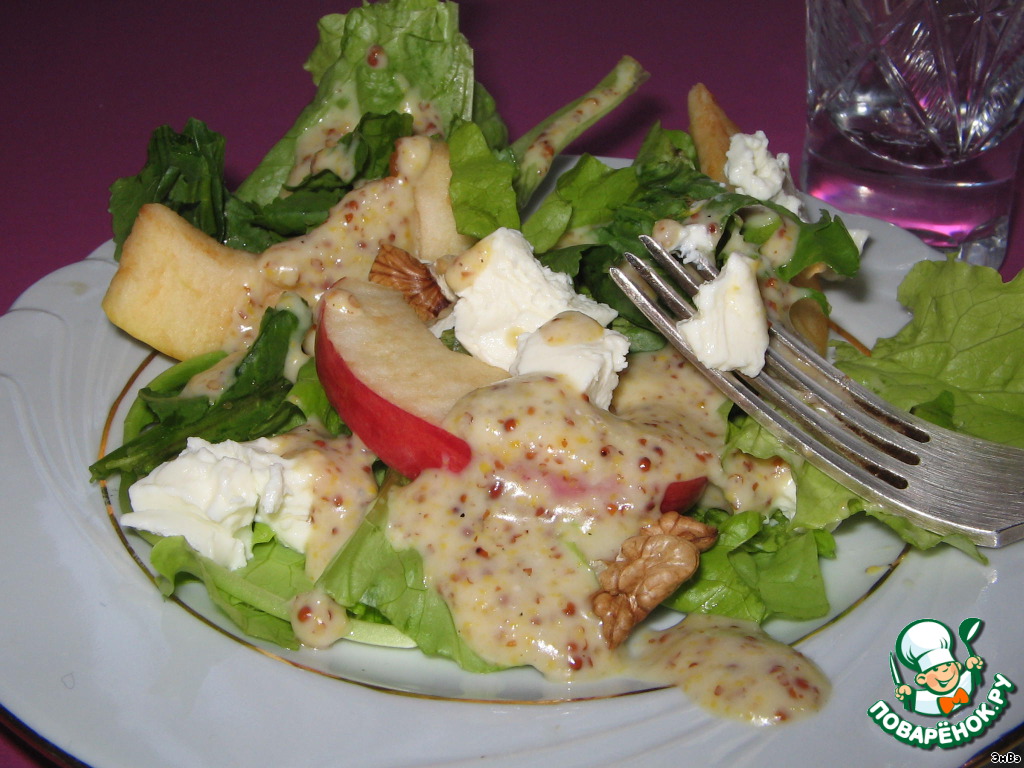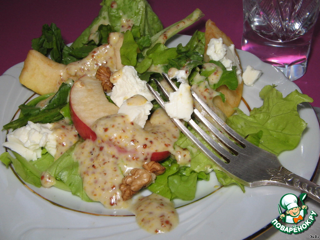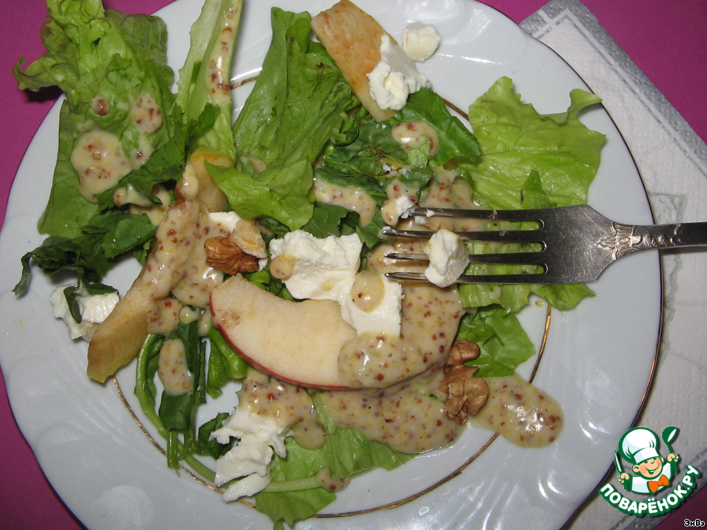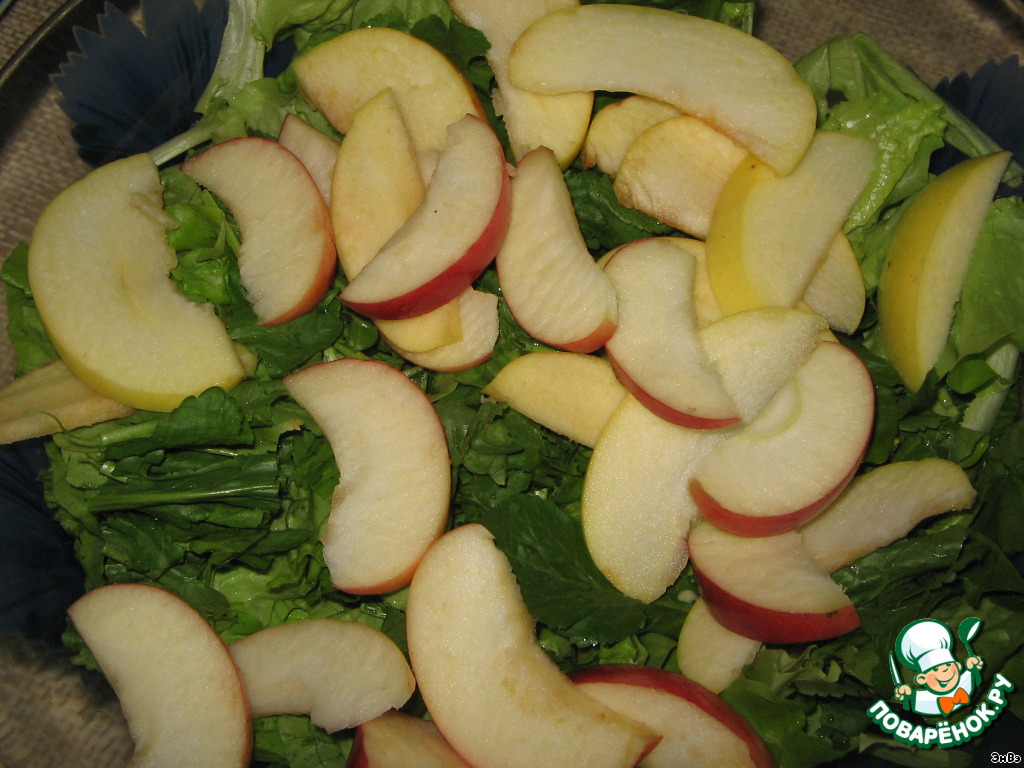 Фету раскрошим вилкой и добавим к салату и яблокам.