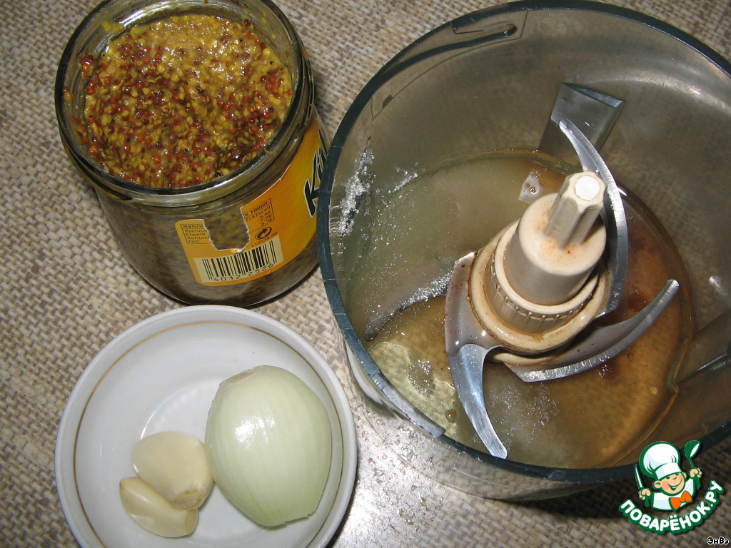 Приготовим соус: все ингредиенты поместим в блендер и смешаем до состояния однородной массы.