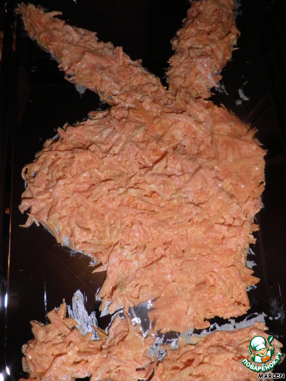 | Все ближе и ближе наступающий 2011 год! На улицах появились первые елки... Так как 2011 - это год кролика, то на стол можно будет приготовить легкий овощной салатик (как то рекомендуют астрологи). Оформление салата, которое я хочу предложить подойдет и для традиционного салата "сельдь под шубой". |