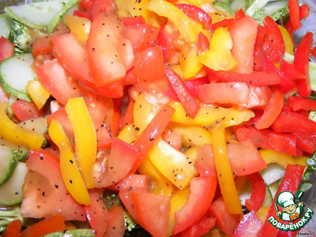 | Как права beautiful woman, началось обострение мужского "шейного свихоза"! Да и надо бы подрежимить после праздников, а то ведь баловали себя любимых! А это баловство боком выходить, юбочка что-то стала плотновато сидеть, застегивается только на вздохе! И я внесла не большие добавления (just а little) в "легкий, как перышко, свежий, как майский ветерок, сочный, как райское яблочко, яркий, как вспышка света салат "Само совершенство"! |