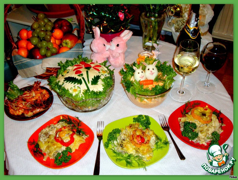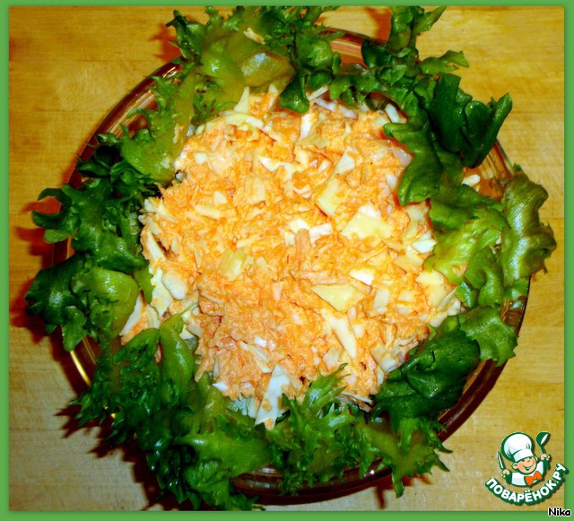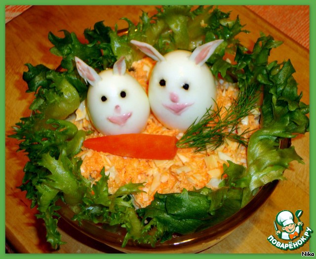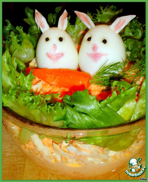 | Самый обычный и простой салат, который любят не только зайцы, но и мы его тоже употребляем. И вот такой салат я приготовила на новогодний стол. |