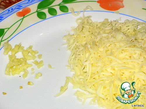 Сыр натрите на мелкой терке. Чеснок пропустите через пресс.