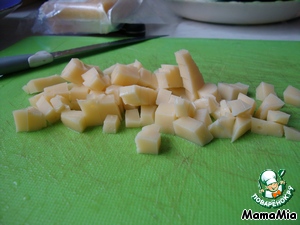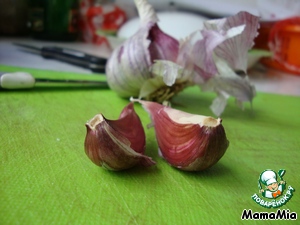 Берем 2 зубчика чеснока и давим их на чеснокодавке. Хотя можно и мелко нарезать - это уже на ваше усмотрение.