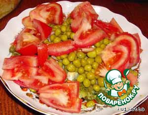 Помидор нарезать не мелко (дольками, а потом ещё пополам).