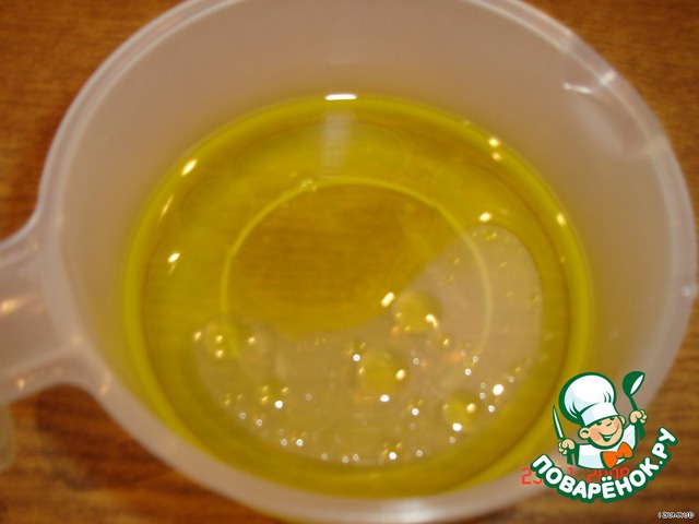 Оливковое масло смешать с ананасовым сиропом (2 ст.ложки сиропа).