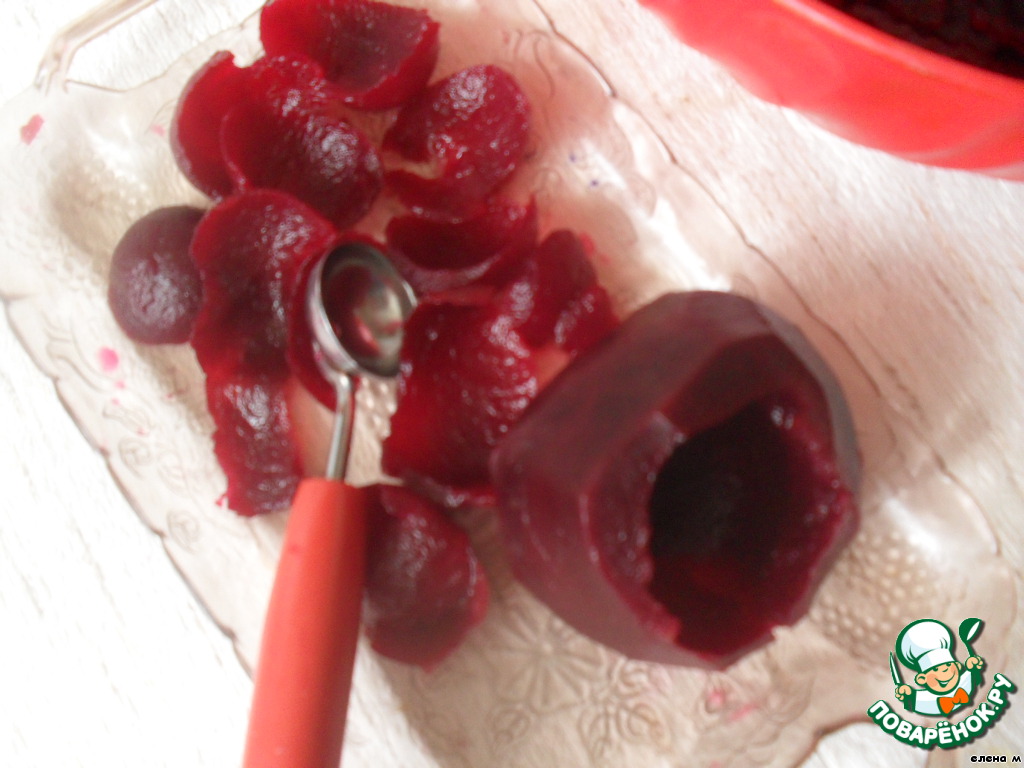 Из оставшейся свеколки выемкой вырезаем лепестки цветка для украшения