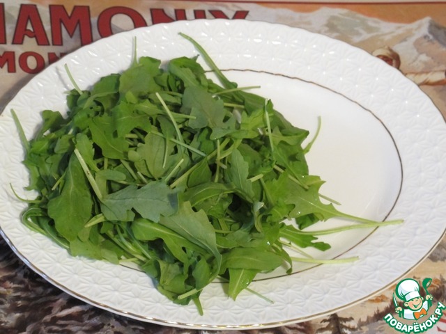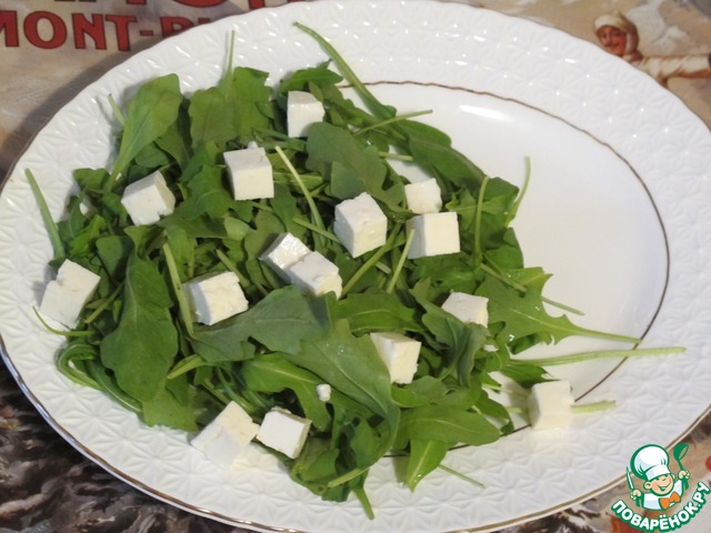 Лосось (у меня форель) порезать полосками, положить на рукколу с брынзой. Затем имбирь.